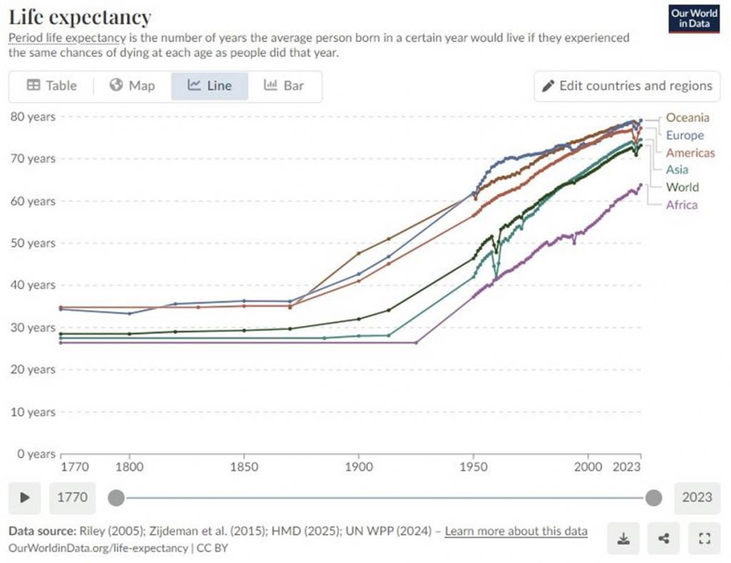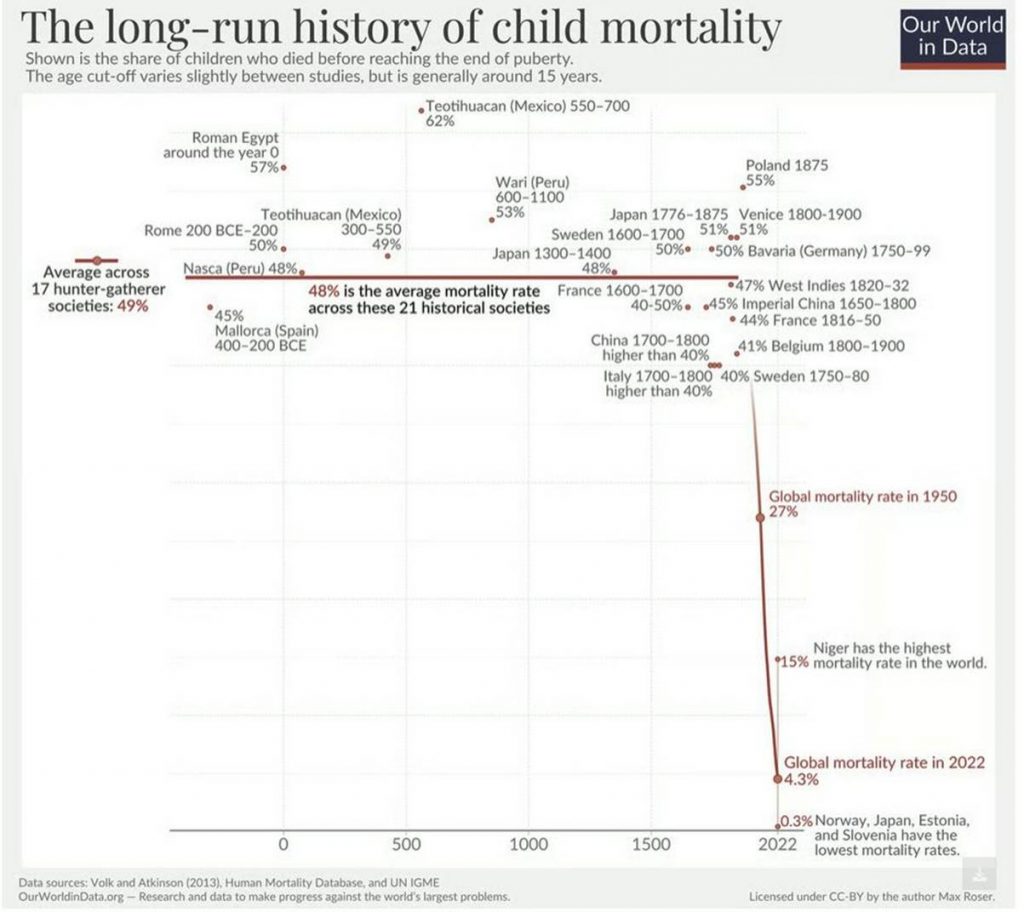 B. Infant mortality has declined very fast and longevity has risen very fast. Again, there’s nothing you can do about either of those things and, I hope, nothing you would want to.